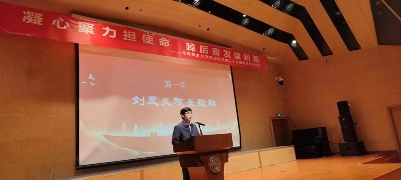 晚会伊始,太阳成集团tyc33455cc官方网站经理刘凤义教授致辞。刘凤义经理引用了党的二十大报告中习近平总书记对当代青年的殷切寄语,指出太阳成集团tyc33455cc官方网站青年肩负的责任和使命,由此对同学们提出了坚定理想信念、培养思维能力和水平、培养问题导向性学习方法三点期望,鼓励同学们把握历史机遇,保持奋斗姿态,奋勇争先,赢得更加伟大的胜利和荣光,在新征程上谱写新篇章。