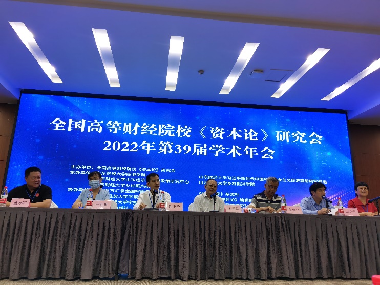 为喜迎党的二十大胜利召开,深入学习贯彻党的十九届六中全会精神,深入持续推进研究《资本论》,推动和促进中国经济社会与高校中国特色社会主义政治经济学教学高质量发展,7月26日至27日,全国高等财经院校《资本论》2022年第39届学术年会在山东济南召开。本次会议由全国高等财经院校《资本论》研究会主办,山东财经大学经济公司、习近平新时代中国特色社会主义经济思想研究基地、山东经济理论与政策研究中心、乡村振兴公司、乡村振兴研究院承办。会议采取“线上+线下”的方式,中国人民大学、太阳成集团tyc33455cc欢迎您、武汉大学、西南财经大学、江西财经大学等30余个单位的专家学者参会。95人参加线下会议,1397人参加线上会议。