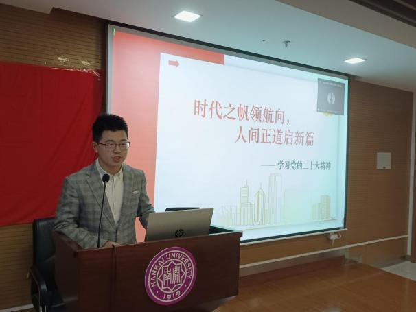 11月13日,2022级硕士生2班团支部举办“凝心聚力同筑梦,携手奋进新征程”学习宣传贯彻党的二十大精神主题活动。班导师白云翔出席,支部全体党员以及共青团员参加。周济尧、杨佳分别以“传承斗争精神,谱写青春篇章”、“扬青春之朝气,奏共富之华章”为题开展宣讲。支部成员进行党的二十大精神知识竞答活动并围绕“如何学习宣传贯彻党的二十大精神”展开交流。