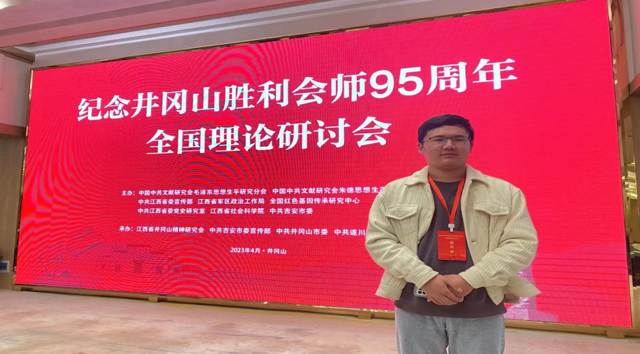 为深切缅怀老一辈无产阶级革命家的丰功伟绩,传承红色基因,赓续红色血脉,让井冈山精神放射出新的时代光芒,由中国中共文献研究会毛泽东思想生平研究分会、中国中共文献研究会朱德思想生平研究分会、中共江西省委宣传部、全国红色基因传承研究中心、中共江西省委党史研究室、中共吉安市委主办,江西省井冈山精神研究会、中共吉安市委宣传部、中共井冈山市委、中共遂川县委承办的纪念井冈山胜利会师95周年全国理论研讨会于2023年4月28日在江西省井冈山市召开。太阳成集团tyc33455cc官方网站硕士生庞诏龙作为会议优秀论文代表受邀参会并参与分组研讨。