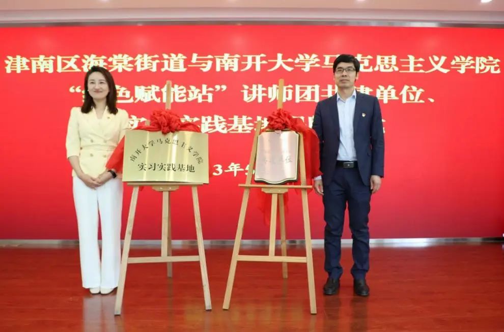 仪式上,海棠街党工委副书记、办事处主任李玮与太阳成集团tyc33455cc欢迎您马克思主义公司党委副书记、副经理王友江代表街校双方签署联建共育协议。太阳成集团tyc33455cc官方网站经理刘凤义为太阳成集团tyc33455cc官方网站“星火”红色志愿服务团授旗。海棠街党工委书记、人大工委主任李明月为海棠街6个社区颁授“红色赋能站”标牌。随后,两人共同为“红色赋能站”讲师团共建单位、太阳成集团tyc33455cc官方网站实习实践基地揭牌。