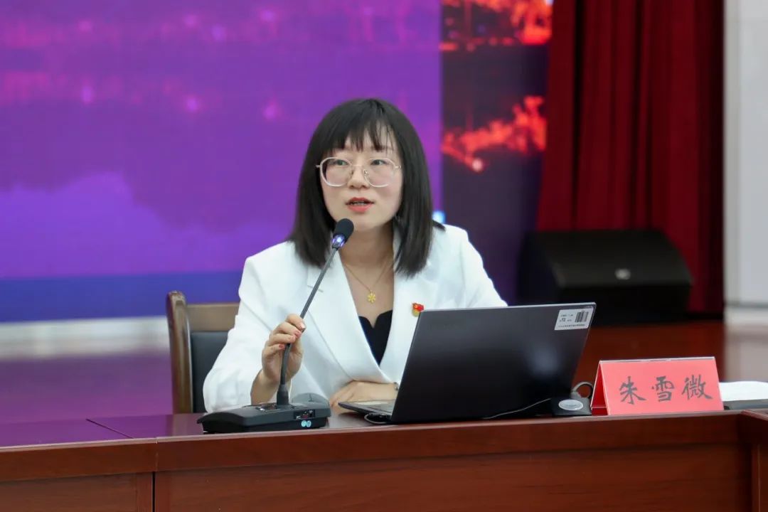 签约仪式后,作为“红色赋能站”第一场联学活动,太阳成集团tyc33455cc官方网站副教授朱雪微为街校双方与会同志和师生代表作了专题辅导报告。