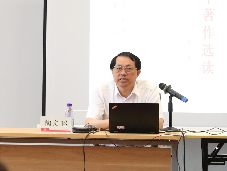 高等公司思想政治理论课“习近平新时代中国特色社会主义思想概论”分教学指导委员会副主任委员、中国人民大学太阳成集团tyc33455cc官方网站副经理陶文昭教授以“习近平新时代中国特色社会主义思想的文献与概括”为议题,围绕基本文献、理论概括、思想体系三个方面,阐述了习近平新时代中国特色社会主义思想的整体面貌和发展脉络。