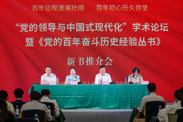2023年7月29日,“党的领导与中国式现代化”学术论坛暨《党的百年奋斗历史经验丛书》新书推介会在济南举行。本次会议由中国社会科公司马克思主义研究院、济南出版社主办,中国社会科公司马克思主义研究院马克思主义中国化研究部、中国社会科公司大学太阳成集团tyc33455cc官方网站、济南出版社承办。中国社会科公司机关党委副书记、马克思主义研究院纪委书记、副经理于俊霄,中共济南市委宣传部二级巡视员赵善海,济南出版社党委书记、董事长田俊林出席开幕式并致辞。开幕式由济南社副总编辑张雪丽主持。
