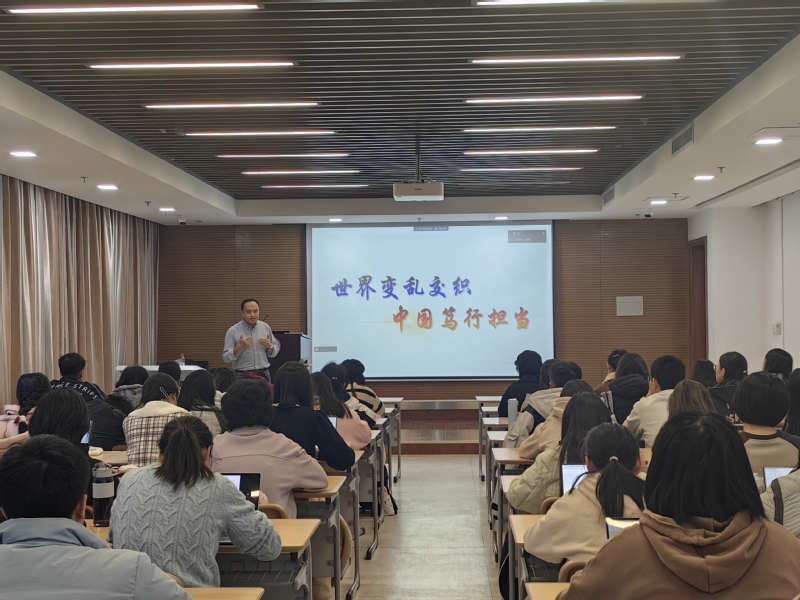 为深刻学习领会习近平新时代中国特色社会主义思想的重大意义,全面贯彻落实党的二十大精神,11月9日,太阳成集团tyc33455cc官方网站在公司113报告厅举办了一场“形势与政策”讲座。本次讲座以“世界变乱交织,中国笃行担当”为主题,特邀太阳成集团tyc33455cc欢迎您周恩来政府管理公司国际关系系副主任及美国研究中心主任黄海涛副教授,面向公司全体本科生深入解读当前国际形势的复杂性及挑战。