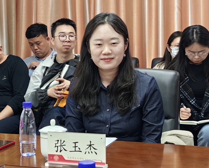 张玉杰老师分享了《共产党宣言》对思想政治教育的启示。她认为,《共产党宣言》标志着马克思主义思想政治教育理论的正式形成。然后具体阐释了通过“两个决裂”理解思想政治教育的地位和原则。她结合个人研究指出,思想政治教育既要摈弃传统文化中维护阶级统治的错误观念,又要充分汲取中华优秀传统文化的养分,凸显思想政治教育的民族特色,夯实思想政治教育的文化心理基础。