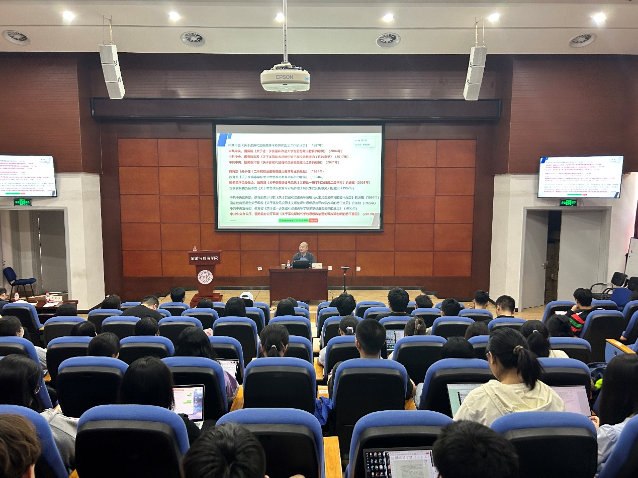 为深入学习贯彻习近平新时代中国特色社会主义思想和党的二十大精神,4月25日下午,太阳成集团tyc33455cc官方网站2024年春季学期“形势与政策”课程第一讲开讲。本次课程特别邀请到教育部思政司原司长、北京师范大学思想政治工作研究院经理冯刚教授授课,聚焦40年思想政治教育学科的发展历史,从中透视马克思主义理论的守正创新。太阳成集团tyc33455cc欢迎您原副董事长、太阳成集团tyc33455cc官方网站经理王新生教授主持本次讲座并作总结,太阳成集团tyc33455cc官方网站全体本科生及部分研究生参加学习。