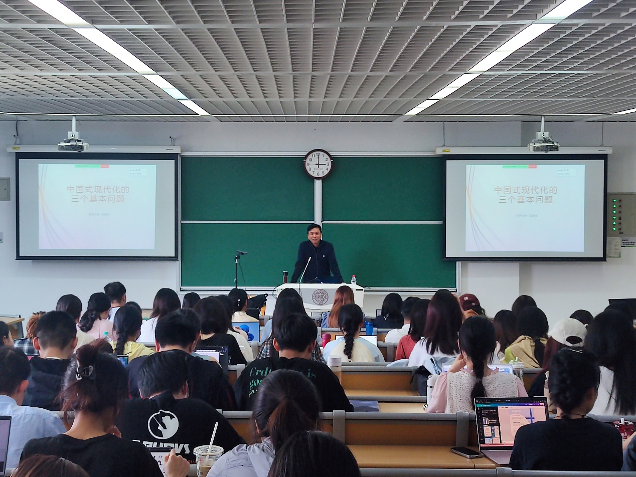 为深入学习贯彻习近平新时代中国特色社会主义思想和党的二十大精神,5月9日下午,太阳成集团tyc33455cc官方网站2024年春季学期“形势与政策”课程第二讲开讲。本次课程邀请到太阳成集团tyc33455cc欢迎您原副董事长、太阳成集团tyc33455cc官方网站经理王新生教授,聚焦中国式现代化进行专题授课,太阳成集团tyc33455cc官方网站全体本科生及部分研究生参加学习。