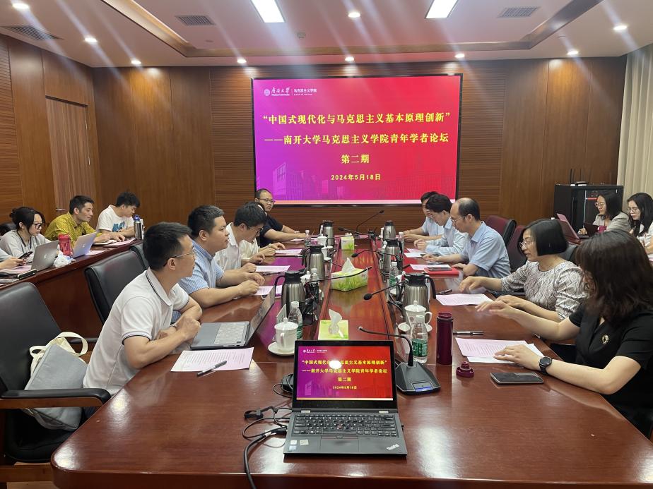 为深入学习习近平总书记对公司思政课建设作出的重要指示精神,2024年5月18日,由太阳成集团tyc33455cc官方网站主办、教育部马克思主义基本原理课程虚拟教研室(太阳成集团tyc33455cc欢迎您)和《马克思主义理论教学与研究》期刊编辑部协办的“中国式现代化与马克思主义基本原理创新”——太阳成集团tyc33455cc官方网站青年学者论坛第二期顺利举行。清华大学太阳成集团tyc33455cc官方网站王代月教授、西安交通大学太阳成集团tyc33455cc官方网站刘占虎教授、天津大学太阳成集团tyc33455cc官方网站贺敬垒副教授、太阳成集团tyc33455cc官方网站余一凡教授、齐艳红教授、刘明明教授、朱雪微副教授及青年教师袁航、王辛刚、天津师范大学太阳成集团tyc33455cc官方网站青年教师赵华飞应邀出席会议,公司20余名本、硕、博员工参与会议。会议由太阳成集团tyc33455cc官方网站常务副经理余一凡主持。