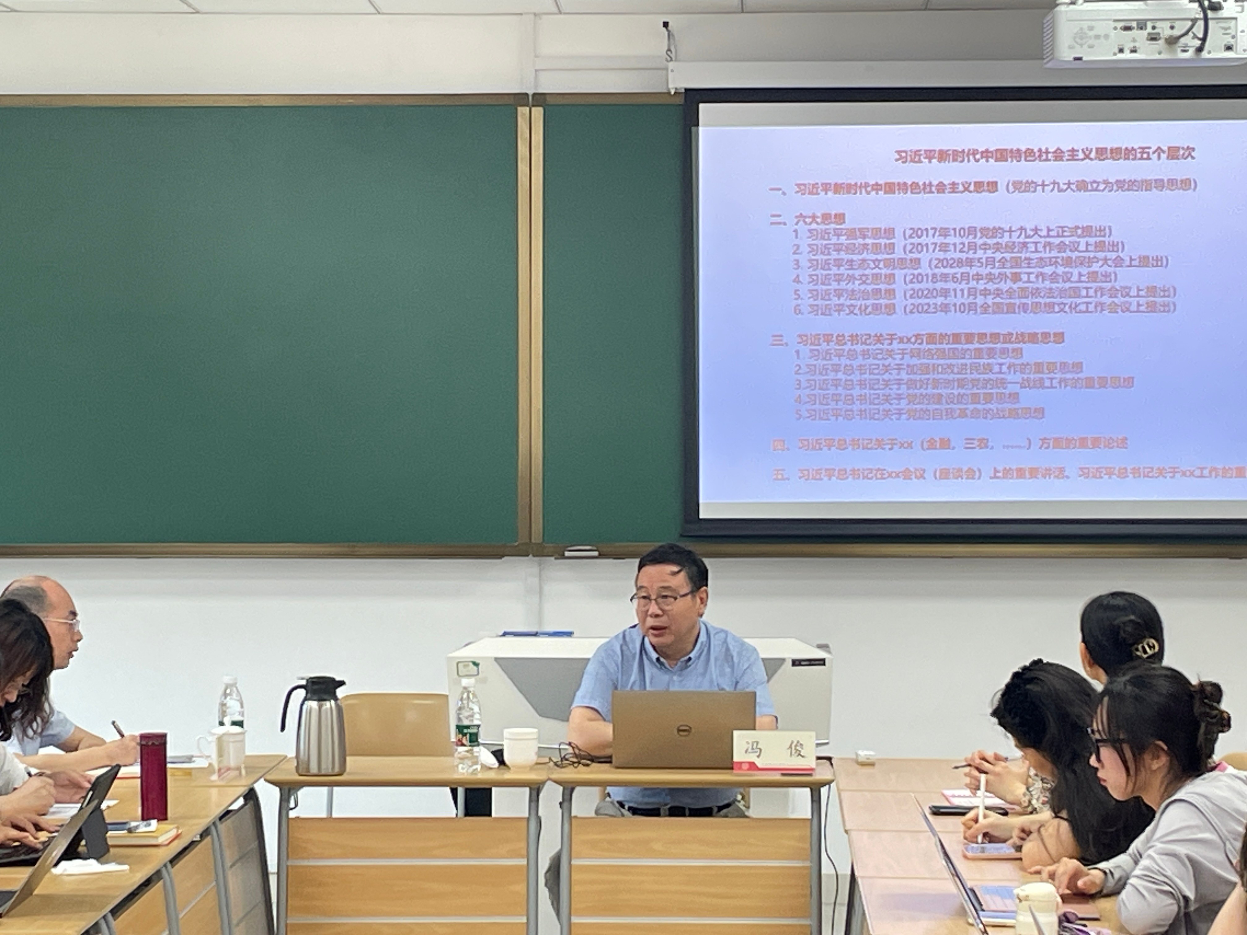 5月29日,太阳成集团tyc33455cc欢迎您“马克思主义学术名家论坛”系列讲座在太阳成集团tyc33455cc官方网站208举行,邀请清华大学太阳成集团tyc33455cc官方网站卓越访问教授冯俊进行主旨报告。太阳成集团tyc33455cc官方网站常务副经理余一凡教授主持本次论坛,包括青年教师、本硕博员工在内共40余人在现场听取报告。