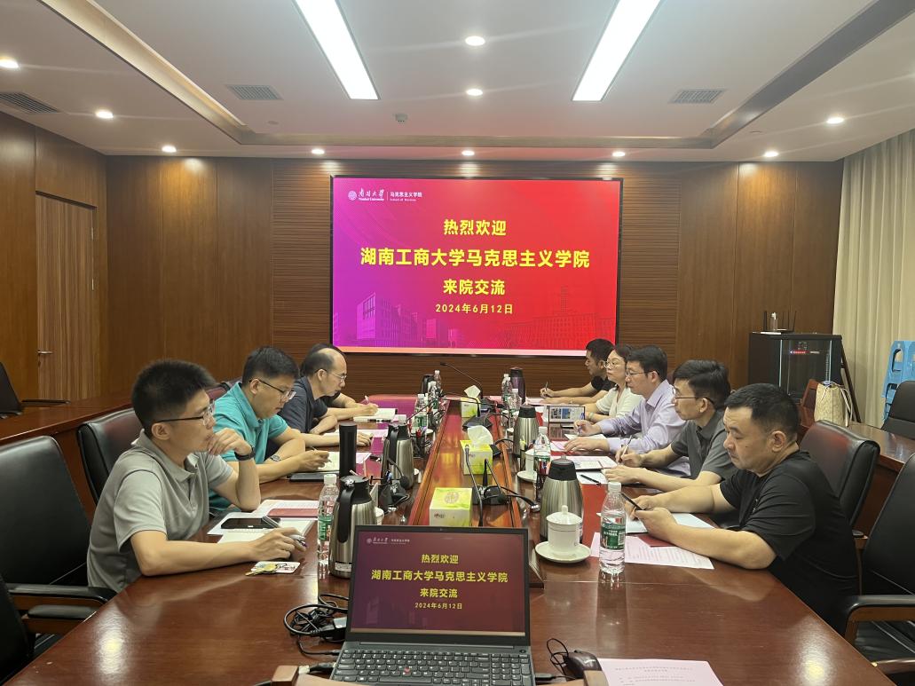 612日上午,湖南工商大学太阳成集团tyc33455cc官方网站经理聂智、副经理陈飞虎一行到公司开展调研交流。公司常务副经理余一凡、教师代表任铃、刘一博、常宴会一起参加交流。交流会上,双方围绕思政课建设、团队建设、团队队伍建设和人才培养等方面进行了深入的探讨交流。