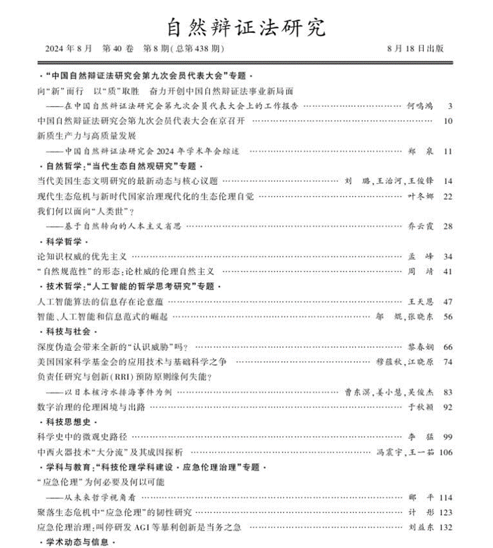 公司叶冬娜副教授在《自然辩证法研究》发表文章《现代生态危机与新时代国家治理现代化的生态伦理自觉》。文章认为,现代生态危机的爆发与生态伦理意识的觉醒,标志着人类对生态文明的探求与建设进程发生了重大转变,也给处于现代化进程中的后发现代化国家敲响了警钟。在人类文明史上,伴随着人与自然互动关系的加深,生态伦理的价值观念也随之发生了变化。每个新文明阶段的出现,都是对人类世界观、价值观的重新塑造。国家治理具有伦理属性,国家治理现代化和生态伦理之间有着密不可分的内在关联。新时代国家治理现代化致力于把“推动生态文明,建设美丽中国,实现中华民族永续发展”作为国家层面的价值目标。这意味着,以习近平同志为核心的党中央把生态文明建设纳入到新时代国家治理体系现代化的范围,把构建人与自然和谐共生的生态秩序作为新时代国家治理现代化的目标之一,是新时代国家治理现代化战略中实现“人与自然和谐共生”的生态伦理价值理念的最好诠释,其中阐述的治国理政的新思路与生态伦理的价值理念是一脉相承的。新时代国家治理现代化的善性正是体现于其遵循生态伦理的价值观、原则以及规范。