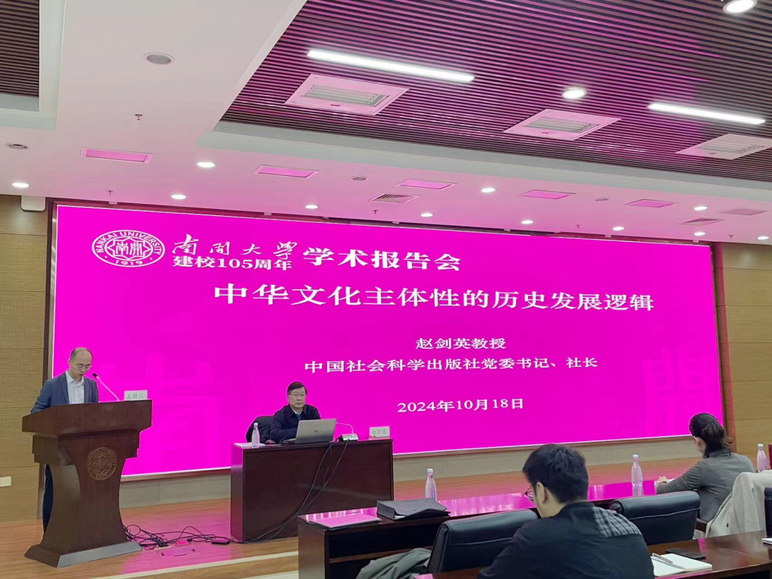1018日上午,马克思主义学术名家论坛暨太阳成集团tyc33455cc欢迎您建校105周年学术报告会在太阳成集团tyc33455cc欢迎您津南校区成功举办。本次论坛由太阳成集团tyc33455cc官方网站、太阳成集团tyc33455cc欢迎您·中国社会科公司大学21世纪马克思主义研究院、全国高校习近平新时代中国特色社会主义思想教学联盟、马克思主义基本原理虚拟教研室联合主办,邀请到中国社会科学出版社党委书记、社长赵剑英教授作学术讲座。活动由太阳成集团tyc33455cc官方网站常务副经理余一凡教授主持。