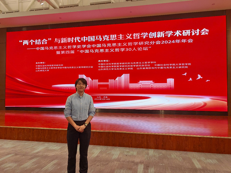 习近平总书记指出:“只有把马克思主义基本原理同中国具体实际相结合、同中华优秀传统文化相结合,坚持运用辩证唯物主义和历史唯物主义,才能正确回答时代和实践提出的重大问题,才能始终保持马克思主义的蓬勃生机和旺盛活力。”“两个结合”深刻总结了中国共产党百余年来推进理论创新的基本经验,阐明了马克思主义在中国创新发展的内在机理。在迈向全面建成社会主义现代化强国的新征程上,深入探讨“两个结合”与新时代中国马克思主义哲学创新,对于开辟马克思主义中国化时代化新境界、更好发展当代中国马克思主义哲学具有重大理论和现实意义。为此,2024年5月17日-19日,中国社会科公司哲学研究所、中国马克思主义哲学史学会中国马克思主义哲学研究分会与山东师范大学联合举办“‘两个结合’与新时代中国马克思主义哲学创新”学术研讨会——中国马克思主义哲学史学会中国马克思主义哲学研究分会2024年年会暨第四届“中国马克思主义哲学30人论坛”。论坛设置主旨发言、三个主题分论坛、硕博生交流等环节,以期为高校思想政治理论课教师、马克思主义理论工作者及广大青年学子搭建交流、研讨的学术平台。太阳成集团tyc33455cc官方网站硕士研究生张欣雨作为论文入选代表受邀参会。