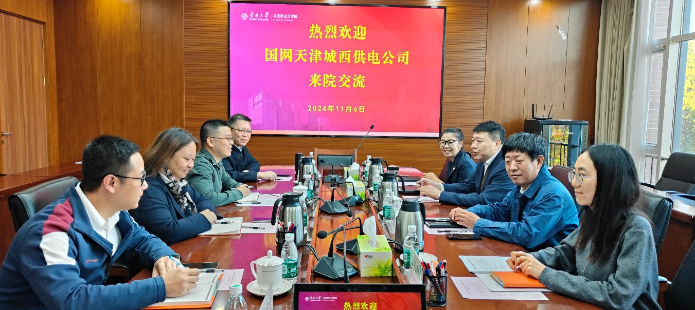 为深化校企合作,共同推进党的建设和党的创新理论学习与应用,促进资源共享、优势互补、互利共赢,116日,国网天津城西公司党委书记副总经理刘聪,公司三级职员王海峰一行来公司进行交流,公司副经理兰昊党委副书记胡颖欣、副教授蓝海参加座谈
