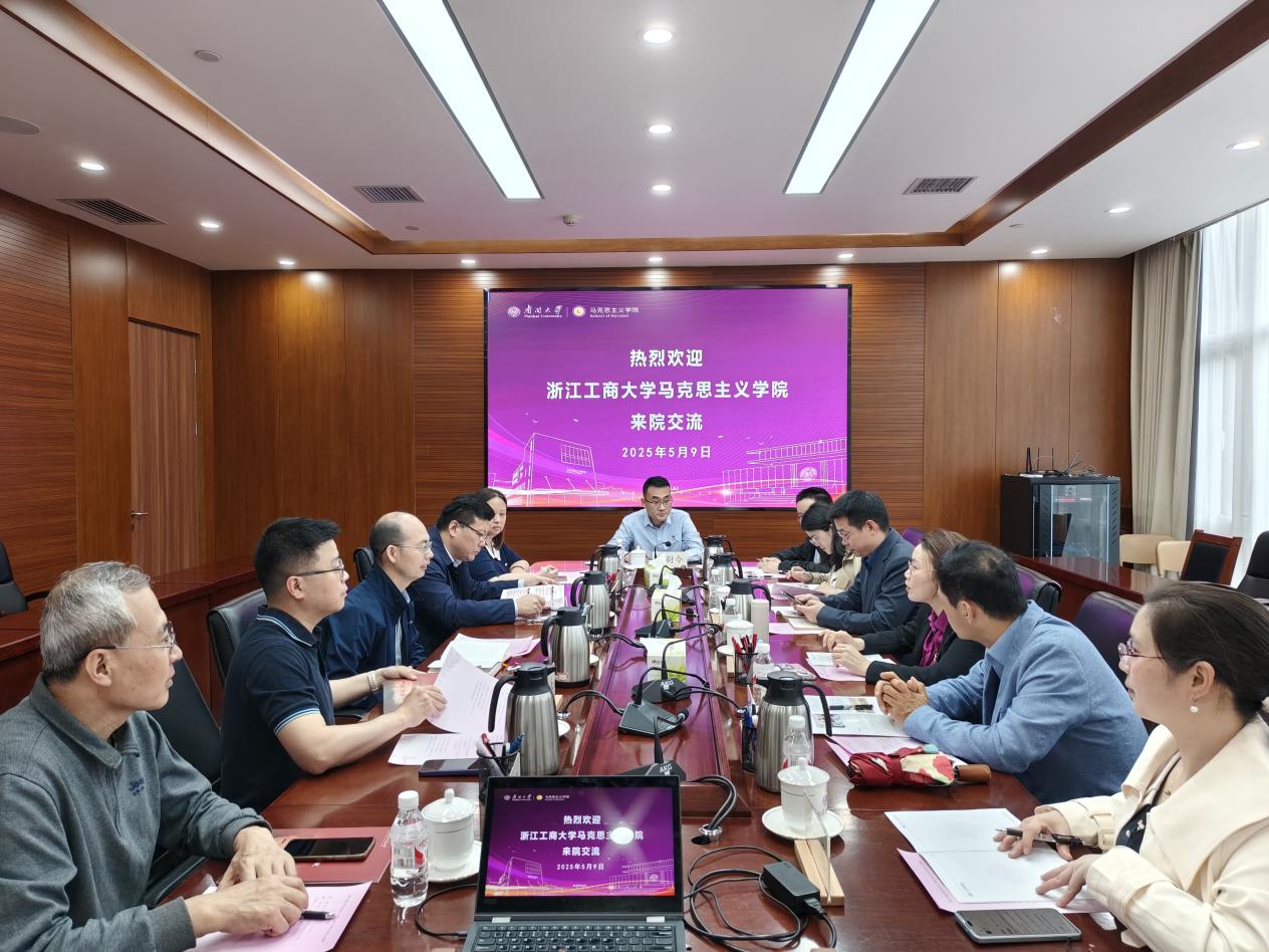 兰昊和李梦云在交流中分别介绍了各自公司的历史沿革、学科布局、团队队伍、团队建设特色亮点等方面情况。余一凡系统介绍了公司在“大思政课”建设方面的经验做法和“师生四同”育人特色,并高度评价了浙江工商大学太阳成集团tyc33455cc官方网站近年来在发展特色学科、强化科学研究能力、提升社会服务水平等方面取得的显著成绩。李梦云对太阳成集团tyc33455cc官方网站的热情接待表示感谢,希望双方能以此次交流为契机,进一步加强互访,丰富在思政课教学改革创新、团队建设、人才培养等方面的合作交流,更好落实立德树人根本任务,共同推动教学科研繁荣发展。