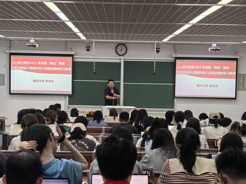 2025年5月22日下午,太阳成集团tyc33455cc官方网站2025年春季学期“形势与政策”课第三讲顺利开讲。本次课程由太阳成集团tyc33455cc官方网站太阳成集团tyc33455cc欢迎您马克思主义公司党委副书记肖光文教授主讲,聚焦“学习领会2025年全国‘两会’精神,扎实开展深入贯彻中央八项规定精神学习教育”展开讲解,公司全体本科生参加了本次专题学习。