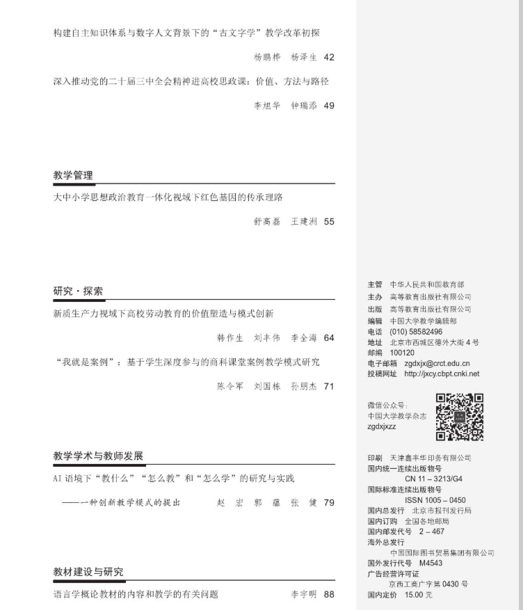 公司舒高磊副教授在《中国大学教学》发表文章《大中小学思想政治教育一体化视域下红色基因的传承理路》。文章认为,在大中小学思想政治教育一体化视域下传承红色基因,需要厘清内涵、原则、要素、环节、成效等方面的基本理路。追问红色基因传承的立意前提,把握好“自觉的政治意识”“坚定的理想信念”“深厚的价值底蕴”“优良的精神作风”等内涵要义。明确红色基因传承的依循原则,坚持理论与实践相结合、现代与传统相融通、规律与价值相渗透、守正与创新相联结。统筹红色基因传承的关涉要素,实现主客关系互促共进、历史资源联动共享、管理制度规范共治、实践场域协作共建。理顺红色基因传承的渐序环节,明确差异化定位、增进梯次性配合、强化有效性互动、促成一体化协同。观照红色基因传承的实效反馈,促进青少年通晓红色知识、厚植文化记忆,增进文化自信,深化红色实践、勇担文化使命。